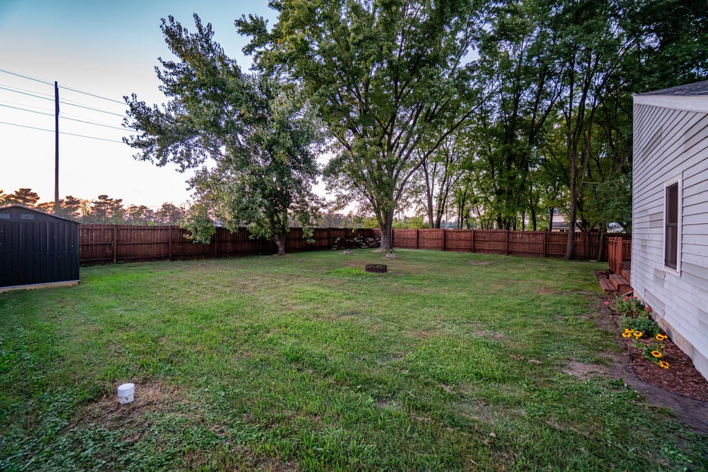 A large, fenced yard with mature trees and hedges offer enhanced privacy for your two and four legged friends.